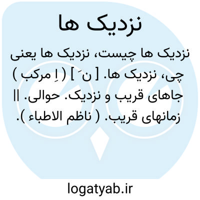 نزدیک ها. [ ن َ ] ( اِ مرکب ) جاهای قریب و نزدیک. حوالی. || زمانهای قریب. ( ناظم الاطباء ).