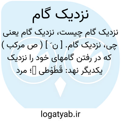 نزدیک گام. [ ن َ ] ( ص مرکب ) که در رفتن گامهای خود را نزدیک یکدیگر نهد: قَطَوْطی ̍؛ مرد درازپای نزدیک گام. ( منتهی الارب ).