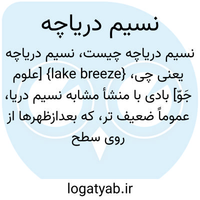 {lake breeze} [علوم جَوّ] بادی با منشأ مشابه نسیم دریا، عموماً ضعیف تر، که بعدازظهرها از روی سطح دریاچه های بزرگ به سوی سواحل می وزد