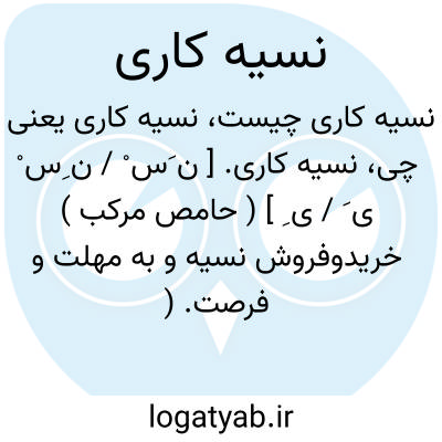 نسیه کاری. [ ن َس ْ / ن ِس ْ ی َ / ی ِ ] ( حامص مرکب ) خریدوفروش نسیه و به مهلت و فرصت. ( ناظم الاطباء ). نسیه فروشی و نسیه خری. عمل نسیه فروش و نسیه خر. دادوستد به نسیه.