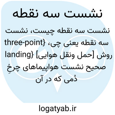 {three-point landing} [حمل ونقل هوایی] روش صحیح نشست هواپیماهای چرخِ دُمی که در آن هر سه ارابۀ فرود هم زمان با سطح باند تماس پیدا می کنند