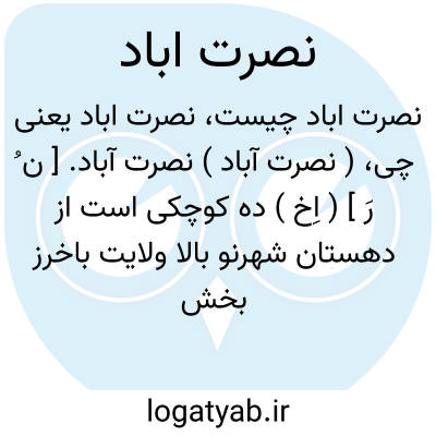 ( نصرت آباد ) نصرت آباد. [ ن ُ رَ ] ( اِخ ) ده کوچکی است از دهستان شهرنو بالا ولایت باخرز بخش طیبات شهرستان مشهد. ( از فرهنگ جغرافیائی ایران ج 9 ).