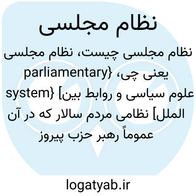 {parliamentary system} [علوم سیاسی و روابط بین الملل] نظامی مردم سالار که در آن عموماً رهبر حزب پیروز در انتخابات مجلس، قوۀ مجریه را در اختیار می گیرد و قوای مقننه و مجریه کاملاً از یکدیگر تفکیک نشده اند