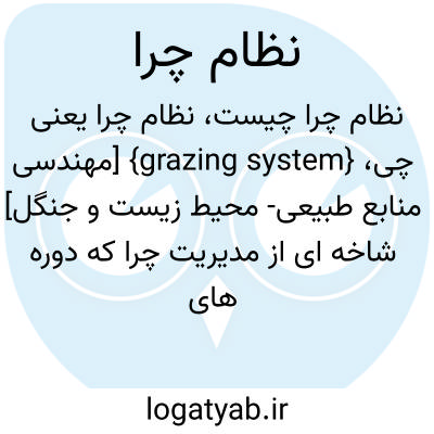 {grazing system} [مهندسی منابع طبیعی- محیط زیست و جنگل] شاخه ای از مدیریت چرا که دوره های ممنوعیت و آزادی چرا را در مراتع تعیین می کند