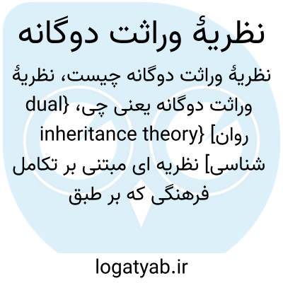 {dual inheritance theory} [روان شناسی] نظریه ای مبتنی بر تکامل فرهنگی که بر طبق آن ژن ها و یاده ها اشکال جداگانه ای از وراثت هستند که ضرورتاً با یکدیگر تعامل ندارند
