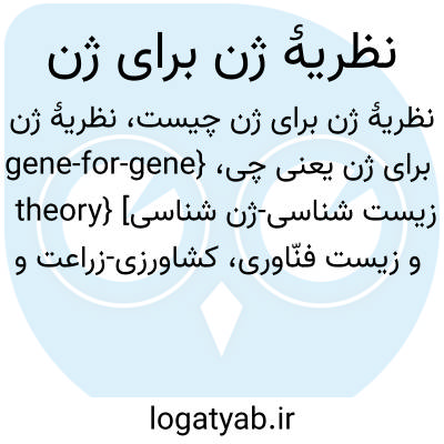 {gene-for-gene theory} [زیست شناسی-ژن شناسی و زیست فنّاوری، کشاورزی-زراعت و اصلاح نباتات] نظریه ای مبنی بر اینکه به ازای هر ژن مقاومت در میزبان یک ژن بیماری زا در عامل بیماری زا وجود دارد