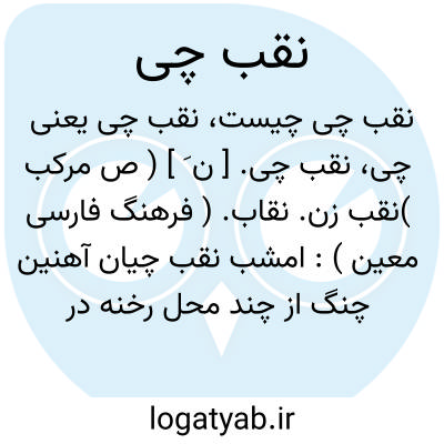 نقب چی. [ ن َ ] ( ص مرکب )نقب زن. نقاب. ( فرهنگ فارسی معین ): امشب نقب چیان آهنین چنگ از چند محل رخنه در حصار انداخته سوراخ کنند. ( عالم آرای عباسی، از فرهنگ فارسی معین ).