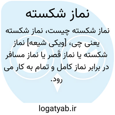 [ویکی شیعه] نماز شکسته یا نماز قَصر یا نماز مسافر در برابر نماز کامل و تمام به کار می رود. وظیفه مسافر آن است که با شرایطی، نمازهای چهار رکعتی خود را دو رکعتی بخواند. شکسته بودن نماز مسافر در مذهب امامیه واجب و در دیگر مذاهب اسلامی جایز است.