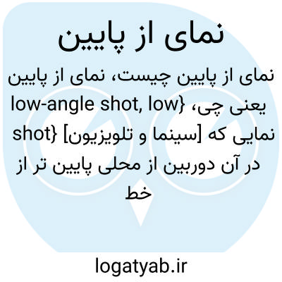 {low-angle shot, low shot} [سینما و تلویزیون] نمایی که در آن دوربین از محلی پایین تر از خط دید به موضوع در بالا نگاه می کند