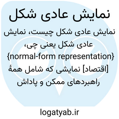 {normal-form representation} [اقتصاد] نمایشی که شامل همۀ راهبردهای ممکن و پاداش های متناظر با آنها برای هر بازیگر باشد و بتوان چارچوب کلی آن را در ماتریس مشاهده کرد