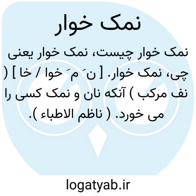 نمک خوار. [ ن َ م َ خوا / خا ] ( نف مرکب ) آنکه نان و نمک کسی را می خورد. ( ناظم الاطباء ). نمک خواره. نمک پرور.نمک پرورد. تحت تکفل. || دو یا چند تن که با هم نان و نمک خورده باشند. ( فرهنگ فارسی معین ).