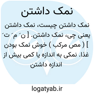 نمک داشتن. [ ن َ م َ ت َ ] ( مص مرکب ) خوش نمک بودن غذا. نمکی به اندازه یا کمی بیش از اندازه داشتن غذا. || ملیح بودن. صاحب ملاحت بودن: