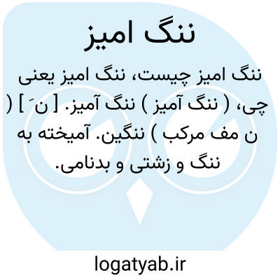 ( ننگ آمیز ) ننگ آمیز. [ ن َ ] ( ن مف مرکب ) ننگین. آمیخته به ننگ و زشتی و بدنامی.