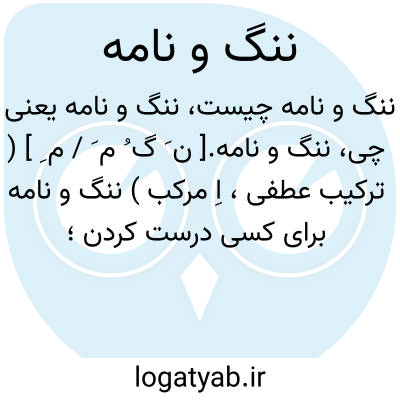 ننگ و نامه.[ ن َ گ ُ م َ / م ِ ] ( ترکیب عطفی، اِ مرکب ) ننگ و نامه برای کسی درست کردن؛ او را متهم به ننگی کردن. ( یادداشت مؤلف ). نیز رجوع به ننگنامه و ننگنامی شود.