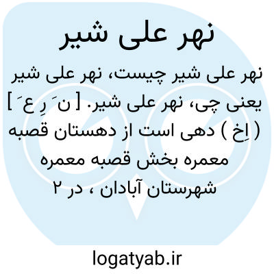 نهر علی شیر. [ ن َ رِ ع َ ] ( اِخ ) دهی است از دهستان قصبه معمره بخش قصبه معمره شهرستان آبادان، در 2 هزارگزی مشرق نهر قصر و 26 هزارگزی جنوب شرقی جاده خسروآباد به آبادان، در دشت گرمسیری واقع است و 700 تن سکنه دارد. آبش از اروندرود، محصولش خرما و حنا و شغل اهالی زراعت و ماهیگیری است. ( از فرهنگ جغرافیائی ایران ج 6 ).