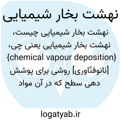{chemical vapour deposition} [نانوفنّاوری] روشی برای پوشش دهی سطح که در آن مواد شیمیایی ابتدا تبخیر می شوند و سپس به کمک گاز حامل بی اثر بر روی سطح داغ نشانده می شوند