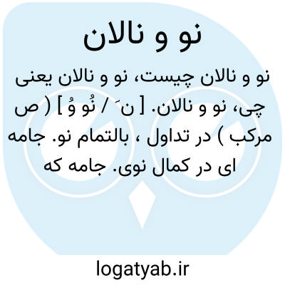نو و نالان. [ ن َ / نُو وُ ] ( ص مرکب ) در تداول، بالتمام نو. جامه ای در کمال نوی. جامه که هیچ پوشیده نشده یا کم پوشیده شده باشد: قبای نو و نالان را غرق لجن کرد، دوجای پالتو نو و نالان را سوزاند. ( یادداشت مؤلف ).