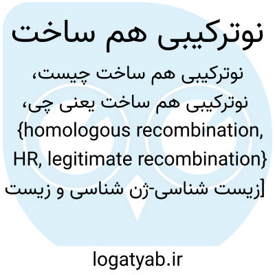 {homologous recombination, HR, legitimate recombination} [زیست شناسی-ژن شناسی و زیست فنّاوری] مبادله یا جانشینی ژن در نتیجۀ چلیپایی شدن یا تبدیل ژن