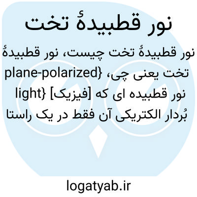 {plane-polarized light} [فیزیک] نور قطبیده ای که بُردار الکتریکی آن فقط در یک راستا نوسان می کند متـ. نور قطبیدۀ خطی linear-polarized light