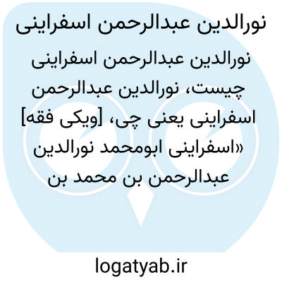 [ویکی فقه] «اسفراینی ابومحمد نورالدین عبدالرحمن بن محمد بن محمد کسرقی»، از مشایخ طریقت کبرویه و مؤسس شعبه نوریه اسفراینیه است.