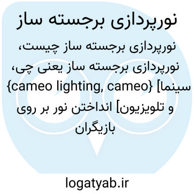 {cameo lighting, cameo} [سینما و تلویزیون] انداختن نور بر روی بازیگران با پس زمینۀ تیره برای تأکید و برجسته کردن آنها