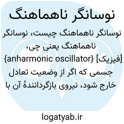 {anharmonic oscillator} [فیزیک] جسمی که اگر از وضعیت تعادل خارج شود، نیروی بازگردانندۀ آن با جابه جایی تناسب خطی ندارد