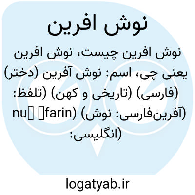 معنی: جاویدان آفریده شده، ( نوش، آفرین = آفریننده )، آفریننده خوشی و لذت، آفریننده ی شیرینی، ( به مجاز ) نیکبخت و سعادتمند، ( اَعلام ) نام قهرمان زن کتاب «نوش آفرین و گوهرتاج»