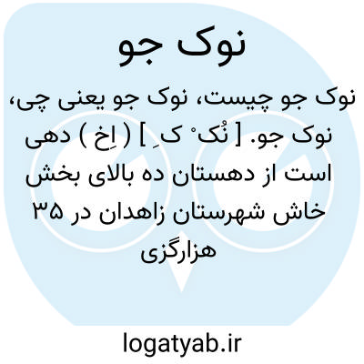 نوک جو. [ نُک ْ ک ِ ] ( اِخ ) دهی است از دهستان ده بالای بخش خاش شهرستان زاهدان در 35 هزارگزی شمال شرقی خاش و 2 هزارگزی غرب راه گزو به خاش، در جلگه گرمسیری واقع است و 107 تن سکنه دارد. آبش از قنات، محصولش غلات و لبنیات، شغل مردمش زراعت و گله داری است. ( از فرهنگ جغرافیائی ایران ج 8 ).