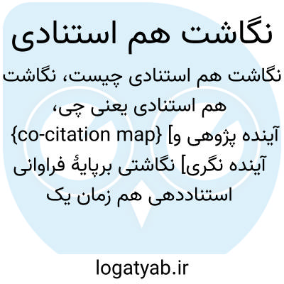 {co-citation map} [آینده پژوهی و آینده نگری] نگاشتی برپایۀ فراوانی استناددهی هم زمان یک مستند خاص به دو مستند دیگر که میزان ارتباط مفهومی آن دو مستند را به یکدیگر نشان می دهد