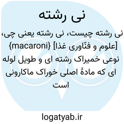 {macaroni} [علوم و فنّاوری غذا] نوعی خمیراک رشته ای و طویل لوله ای که مادۀ اصلی خوراک ماکارونی است
