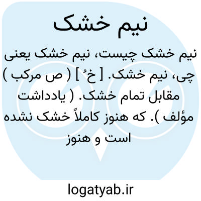 نیم خشک. [ خ ُ ] ( ص مرکب ) مقابل تمام خشک. ( یادداشت مؤلف ). که هنوز کاملاً خشک نشده است و هنوز در آن آثاری از رطوبت و تری باقی است.