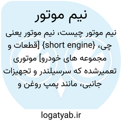 {short engine} [قطعات و مجموعه های خودرو] موتوری تعمیرشده که سرسیلندر و تجهیزات جانبی، مانند پمپ روغن و پمپ سوخت ندارد