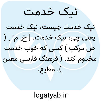 نیک خدمت. [ خ ِ م َ ] ( ص مرکب ) کسی که خوب خدمت مخدوم کند. ( فرهنگ فارسی معین ). مطیع. فرمانبردار. خوش خدمت. رجوع به نیک خدمتی شود.
