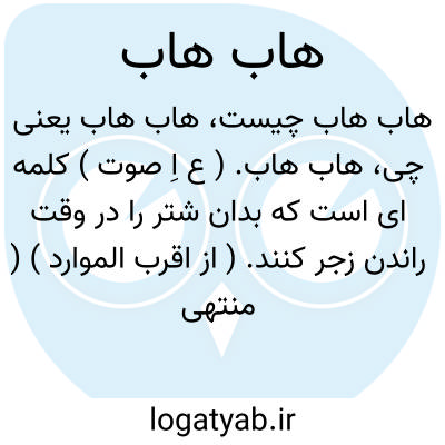 هاب هاب. ( ع اِ صوت ) کلمه ای است که بدان شتر را در وقت راندن زجر کنند. ( از اقرب الموارد ) ( منتهی الارب ) ( آنندراج ) ( ناظم الاطباء ).