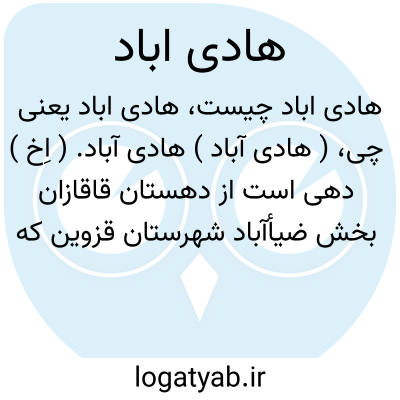 ( هادی آباد ) هادی آباد. ( اِخ ) دهی است از دهستان قاقازان بخش ضیأآباد شهرستان قزوین که در 62 هزارگزی شمال ضیأآباد و سه هزارگزی راه عمومی واقع شده است. جلگه و هوای آن معتدل است. چهار صد و نوزده تن سکنه دارد. بوسیله قنات آبیاری میشود و محصول عمده اش غلات، یونجه، بادام، قیسی، انگور و چغندر قند میباشد. شغل غالب اهالی زراعت است وبرخی به قالی بافی و بافتن گلیم و جاجیم روزگار میگذرانند. راه آن مالرو میباشد ولی از طریق شید اصفهان ماشین میتوان برد. ( از فرهنگ جغرافیایی ایران ج 1 ).