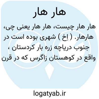 هارهار. ( اِخ ) شهری بوده است در جنوب دریاچه زره بار کردستان، واقع در کوهستان زاگرس که در قرن هفتم ق. م. در اورامان بوسیله دولت آشور بنا شد. آشوریان آنجا را کرسی ولایتی بزرگ کردند و آن را «کارشاروکین » نامیدند. حاکم این شهر که دست نشانده دولت آشور بود در گزارشی که به سناخریب پادشاه آشور داد مینویسد که در اطراف ما ( شهر هارهار ) آرامشی برقرار است، امادر نواحی جنوب ایشپه بره که دوست آشور است دوچار جنگ است و واکسار ( هوخشتره ) توطئه بر ضد حاکم شهر خود دیده است. هوخشتره پادشاه مادی در حدود 615 ق. م. شهر هارهار، واقع در ایالت قدیم لولویی را به تصرف آورد و به این ترتیب راه او بجانب شمال آشور بازشد. ( کرد و پیوستگی نژادی و تاریخی او تألیف رشیدیاسمی ).