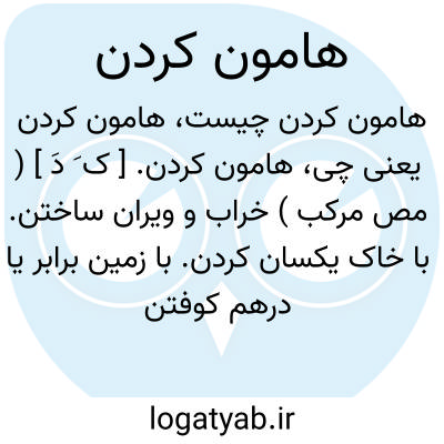 (مصدر ) ۱- هموارکردن مسطح کردن. ۲- پست کردن گودکردن. ۳- خراب کردن ویران ساختن. ۴- یکسان کردن زمین بوسیل. انباشتن: (( زیدبن علی بن الحسین بکوفه بیرون آمد ویوسف بن عمر وباوی حربکرد تاشب اندرتیری رسید ش بمغز اند ر بمرد وپسرش اورا درچاهی افکندوهامون کردوخود بگریخت. ) )