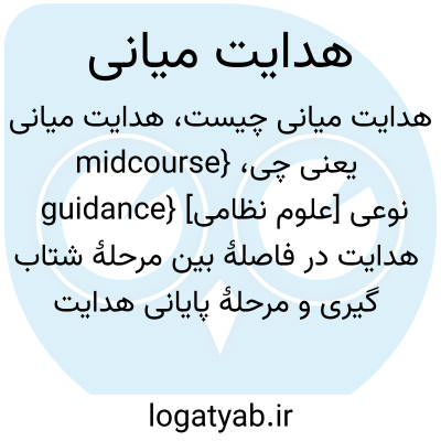 {midcourse guidance} [علوم نظامی] نوعی هدایت در فاصلۀ بین مرحلۀ شتاب گیری و مرحلۀ پایانی هدایت موشک