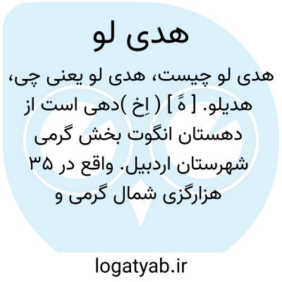 هدیلو. [ هََ ] ( اِخ )دهی است از دهستان انگوت بخش گرمی شهرستان اردبیل. واقع در 35 هزارگزی شمال گرمی و چهارهزارگزی راه شوسه بیله سوار به گرمی. جایی است واقع در جلگه، گرمسیرو دارای 164 تن سکنه. از چشمه مشروب میشود. محصول عمده اش غلات و حبوبات و شغل اهالی زراعت و گله داری است. راه مالرو دارد. ( از فرهنگ جغرافیایی ایران ج 4 ).