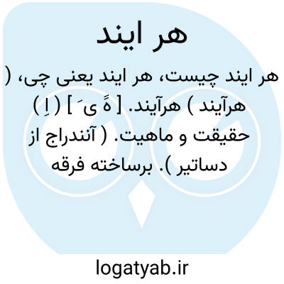( هرآیند ) هرآیند. [ هََ ی َ ] ( اِ ) حقیقت و ماهیت. ( آنندراج از دساتیر ). برساخته فرقه آذرکیوان است. رجوع به هرآنید شود.