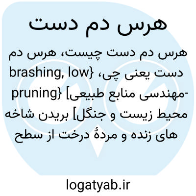 {brashing, low pruning} [مهندسی منابع طبیعی- محیط زیست و جنگل] بریدن شاخه های زنده و مردۀ درخت از سطح زمین تا ارتفاع قابل دسترس انسان در توده های جوان