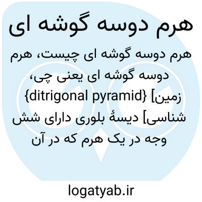 {ditrigonal pyramid} [زمین شناسی] دیسۀ بلوری دارای شش وجه در یک هرم که در آن هر برشِ عمود بر محور تقارن 3، دوسه گوش است متـ. هرم دوسه گوش