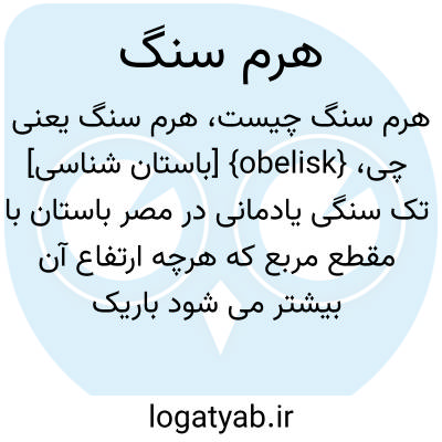 {obelisk} [باستان شناسی] تک سنگی یادمانی در مصر باستان با مقطع مربع که هرچه ارتفاع آن بیشتر می شود باریک تر می شود و نوک آن یک سرهِرم قرار دارد