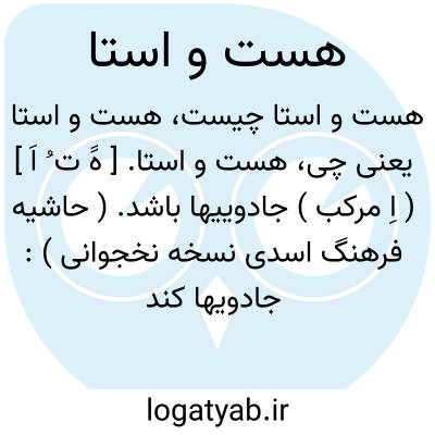 هست و استا. [ هََ ت ُ اَ ] ( اِ مرکب ) جادوییها باشد. ( حاشیه فرهنگ اسدی نسخه نخجوانی ):