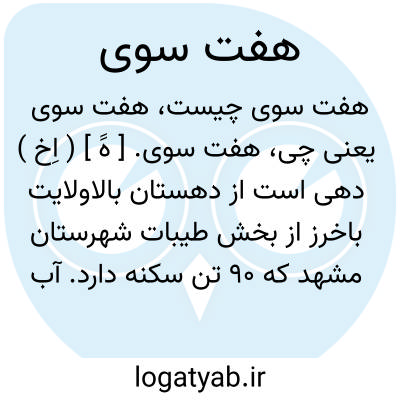 هفت سوی. [ هََ ] ( اِخ ) دهی است از دهستان بالاولایت باخرز از بخش طیبات شهرستان مشهد که 90 تن سکنه دارد. آب آن از قنات و محصول عمده اش غله و بنشن است. ( از فرهنگ جغرافیایی ایران ج 9 ).