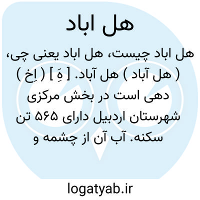 ( هل آباد ) هل آباد. [ هَِ ] ( اِخ ) دهی است در بخش مرکزی شهرستان اردبیل دارای 565 تن سکنه. آب آن از چشمه و محصول عمده اش غله است. ( از فرهنگ جغرافیائی ایران ج 4 ).