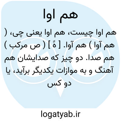 ( هم آوا ) هم صدا دو چیز که صدایشان هم آهنگ و بموازات یکدیگر بر آید یا دو کس که با یکدیگر آواز خوانند