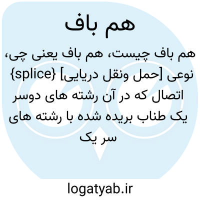 {splice} [حمل ونقل دریایی] نوعی اتصال که در آن رشته های دوسر یک طناب بریده شده با رشته های سر یک طناب به رشته های سر طناب دیگر در یک راستا به هم بافته می شود