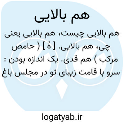 هم بالایی. [ هََ ] ( حامص مرکب ) هم قدی. یک اندازه بودن: