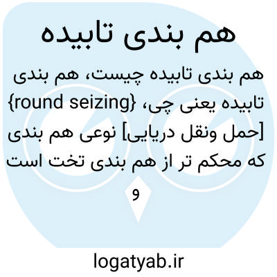 {round seizing} [حمل ونقل دریایی] نوعی هم بندی که محکم تر از هم بندی تخت است و شروع آن مانند دیگر انواع همبندی است، اما در انتها قبل از گره زدن دو سر رشته، آنها را چند بار در امتداد دو طناب اصلی می تابانند و سپس گره می زنند